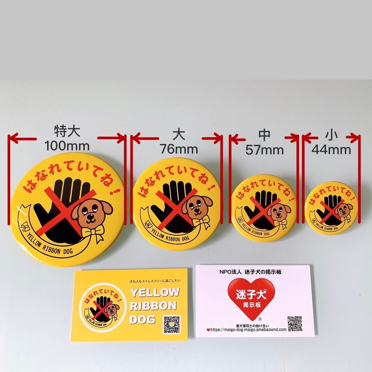 イエローリボン缶バッジは4サイズ。